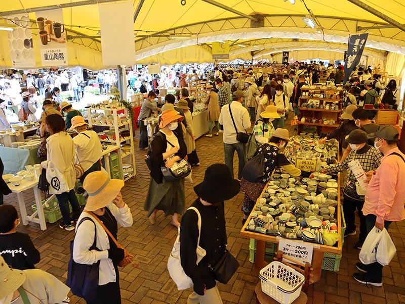 約150店の窯元・商社が出店し、多くの買い物客、やきものファンで賑います。2024年は25万人ものお客様が来場されました。