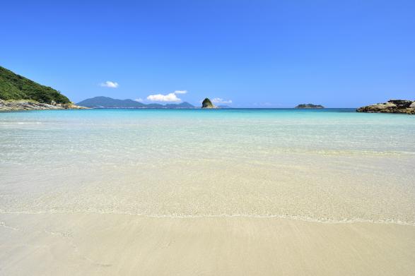地元の人だけが知る穴場スポットです。波の穏やかな日のハマンナでは、透明度の高い青い海と白い砂浜が織りなす絶景が広がり、日常の喧騒を忘れることができます。潮の香りと波のささやきに包まれながら、ゆったりとした時間を過ごしてみませんか。目の前に浮かぶ「源五郎島」は、その姿から「ライオン島」の愛称で地元の人々に親しまれています。頭ヶ島天主堂への途中にありますので、ぜひお立ち寄りください。