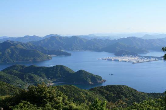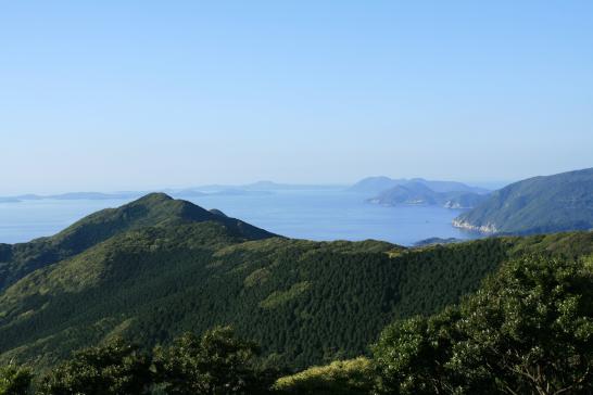 県道170号線の青方から奈摩への途中に分岐があり、頂上の展望台まで車道が続いています。標高431mの高熨斗山は西海に面し、かつては船舶の目印として使われていました。山頂付近には緑地広場があり、乗用車でアクセス可能で、展望所からは上五島国家石油備蓄基地を一望できます。