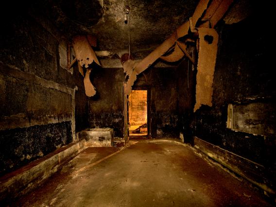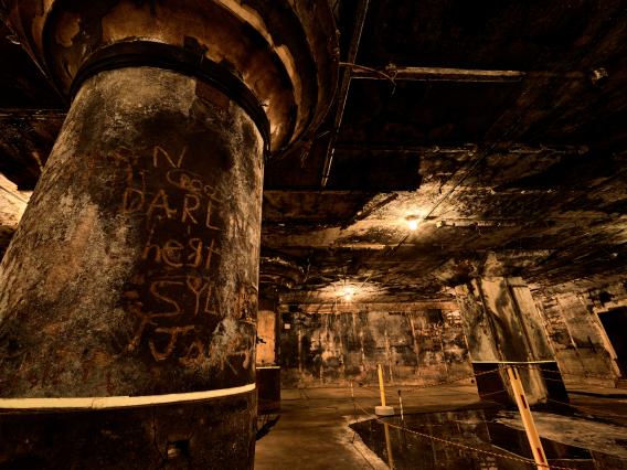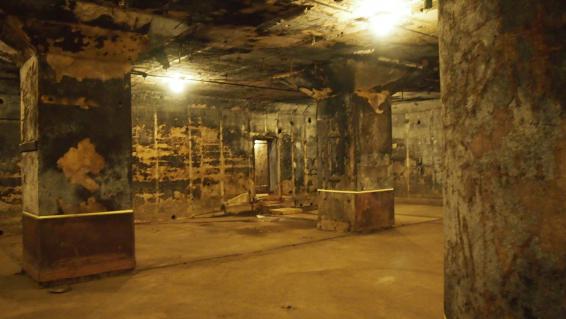 1945年の佐世保空襲で鎮守府庁舎は焼失しましたが、防空指揮所は被害を免れました。また、戦後、不審火により内装は消失しましたが、堅牢な構造の地下壕本体は今なお健在です。