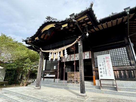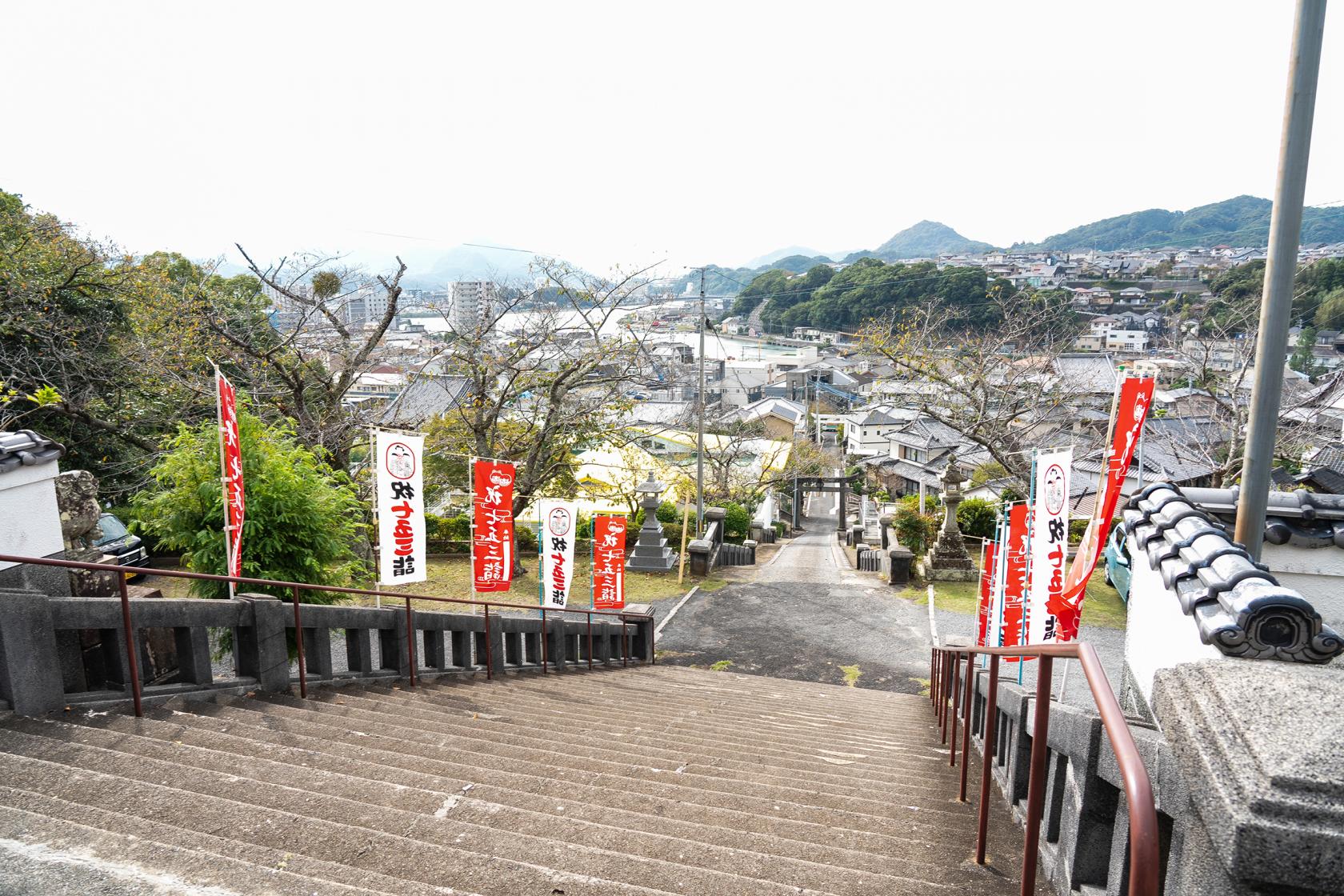 速来宮のある早岐は海沿いの町。ですが、この神社は100段以上の階段を上った高台に位置しています。そのため境内からの眺めは抜群。早岐の町を見下ろし、美しい夕日を眺めることができます。また、早岐小学校側からは朝日を眺めることができるため、初日の出スポットとしても密かに人気を集めています。