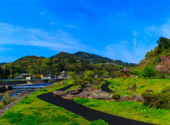 日本一の清流「神浦川」を生かしたゆとりとやすらぎの水辺空間。