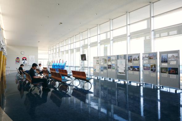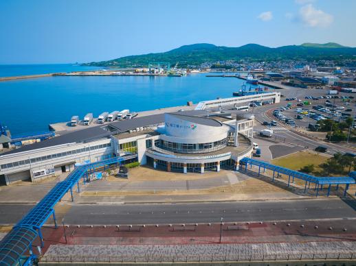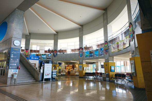 ターミナル内には、各船会社、土産店、飲食店、観光案内所、コンビニなどがあり、2階の展望所からは鬼岳も見ることができます。到着したら、まずは観光案内所でパンフレットや島の情報を手に入れると役立ちます。