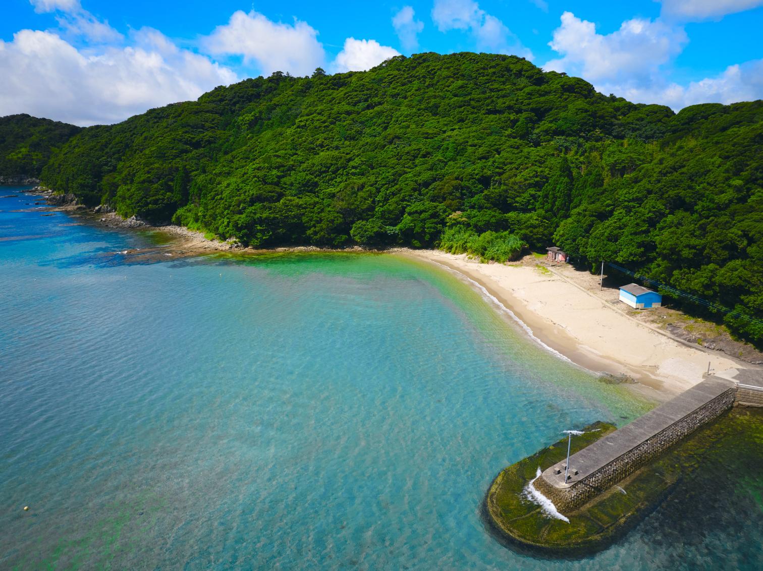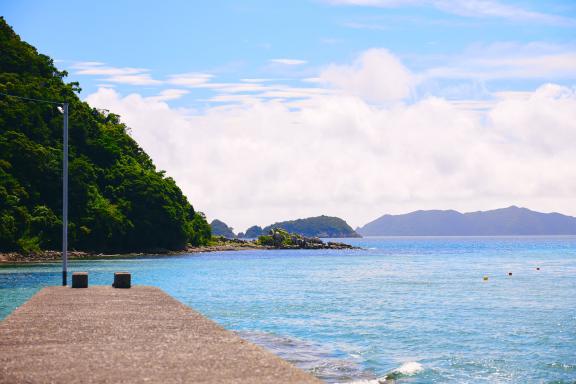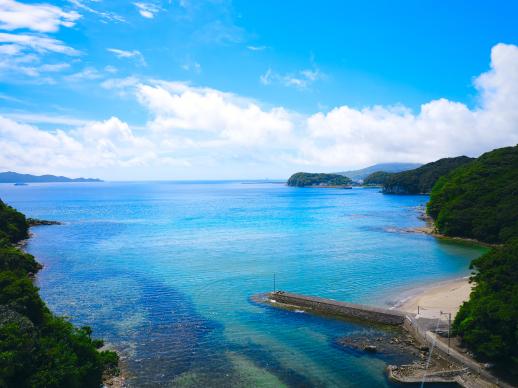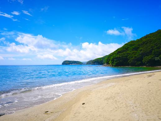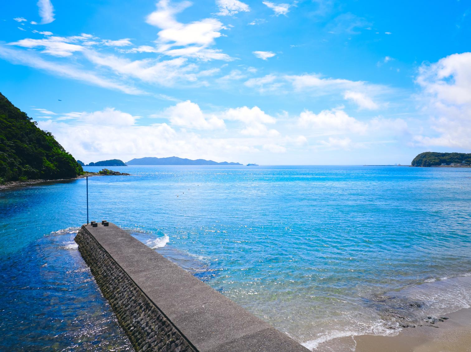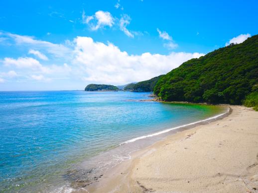 福江港から15分程の場所にあり、市街地から一番近い海水浴場。波静かな入江にあり、まるでプライベートビーチのような小さなビーチです。湾内の水はかなり透き通っていて、小魚が泳いでいるのが見えるくらい透明度は抜群!