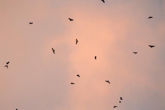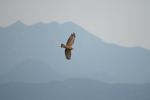 毎年9~10月頃、ハチクマの渡りを見ることができます。ハチクマは、両翼を広げた長さが130cmになる大型のタカ。夏に本州などで繁殖し、秋になると越冬のため東南アジア方面に向います。ハチの幼虫を食べる習慣があること、仲間のクマタカに似ていることが「ハチクマ」の名前の由来といわれています。日本に飛来したほとんどのハチクマが五島列島(大瀬崎)を経て大陸に渡りそこから南下するそうです。この時期には壮大な渡りを観察するため多くの人が訪れます。