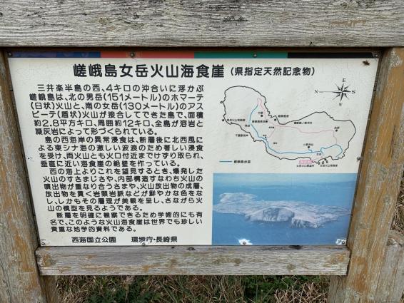 また、嵯峨島火山海食崖は、県指定天然記念物に指定されており、島内には、約4kmにわたる自然散策道や、陸上から島の断面を見ることができる女岳火口展望所が整備されています